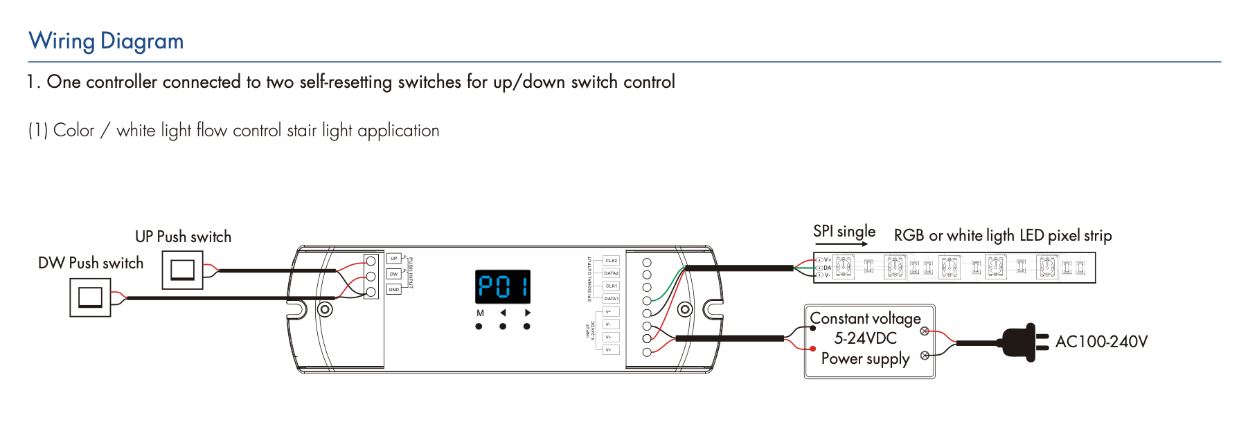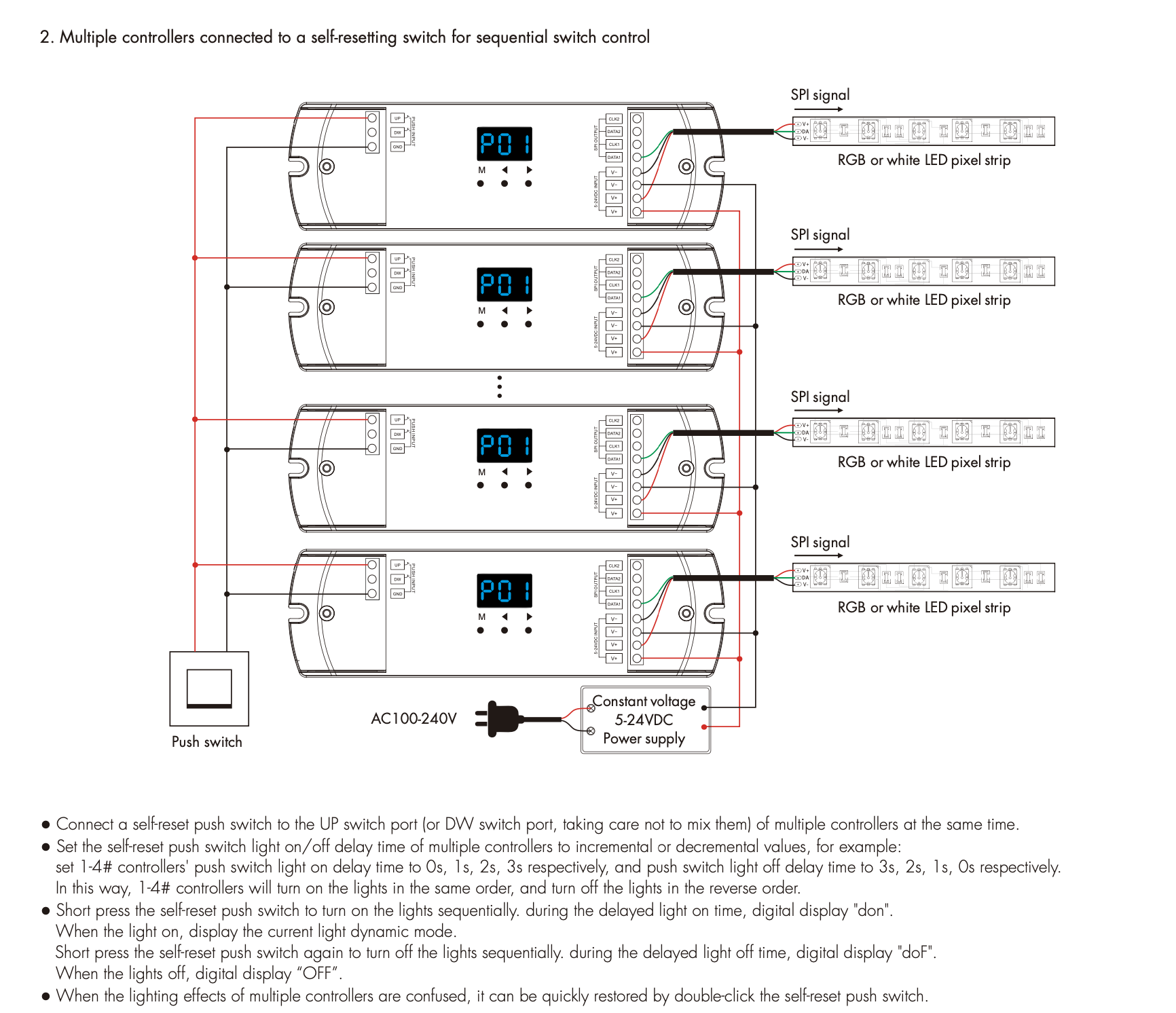 - Możliwość sekwencyjnego przełączania przy użyciu pojedynczego przycisku powrotnego przy podłączeniu kilku sterowników SPI