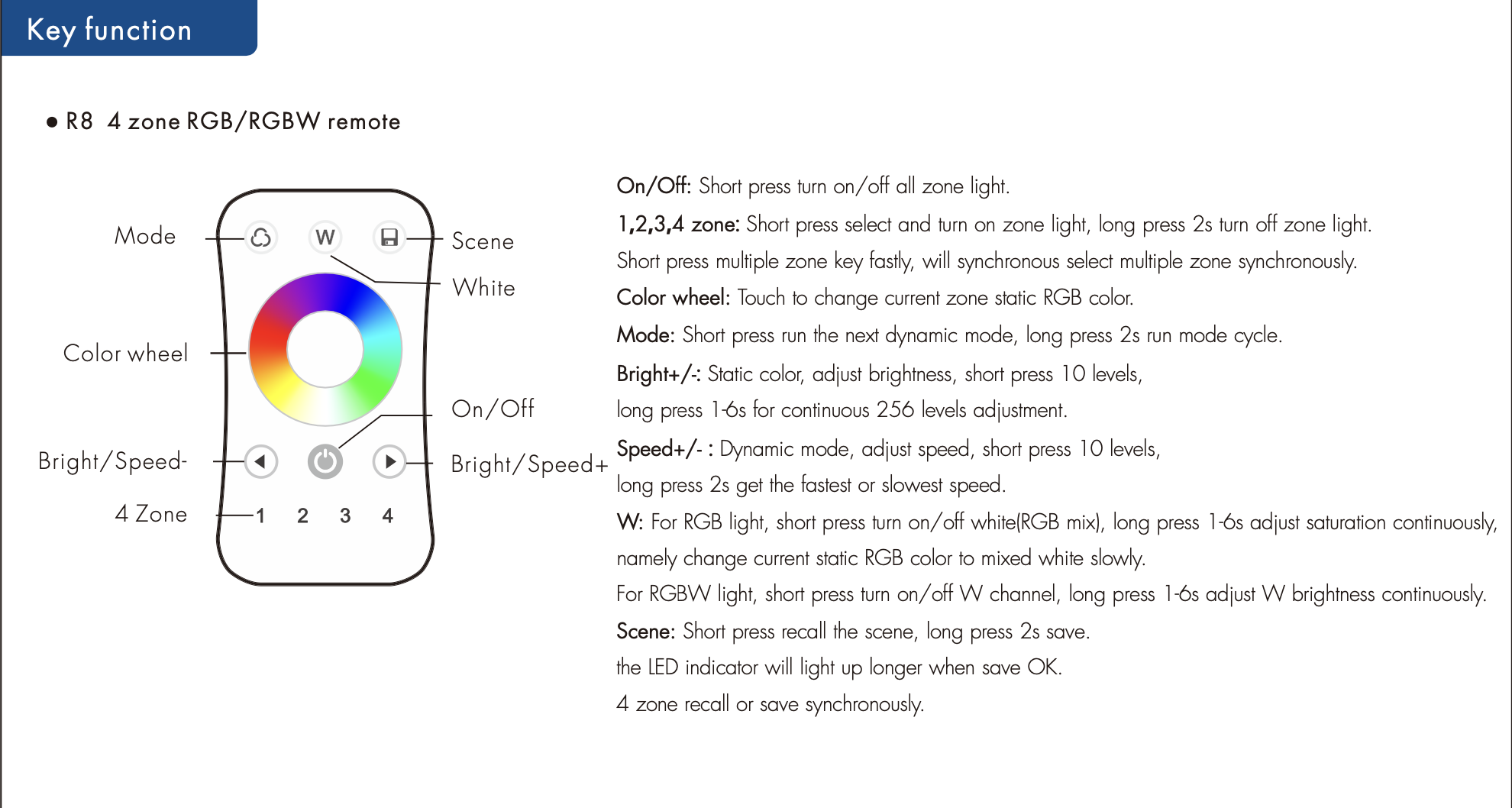 R8(B) Pilot RF LED RGB/RGBW 4-Strefowy