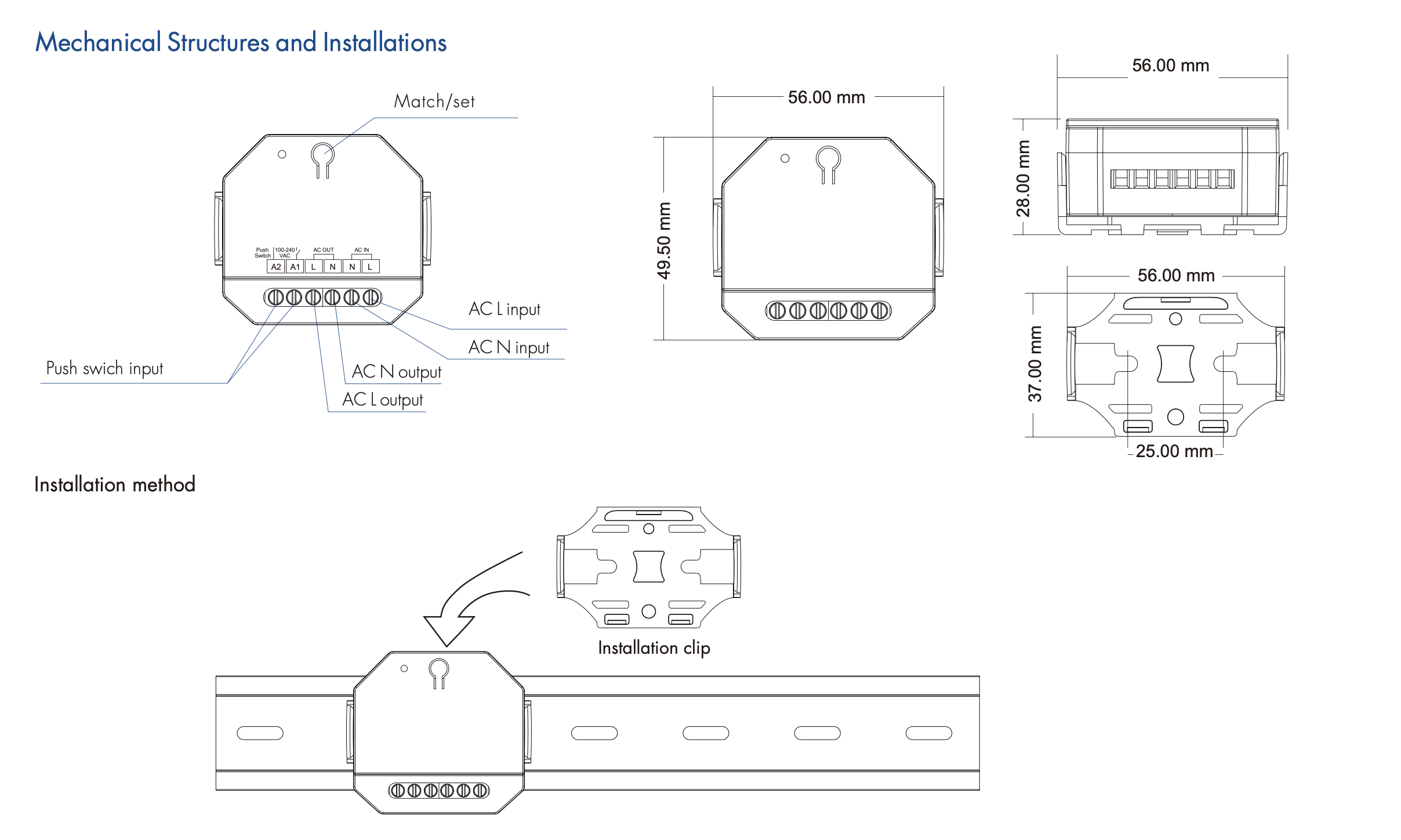 - przełącznik WiFi + RF + AC push, bez funkcji ściemniania