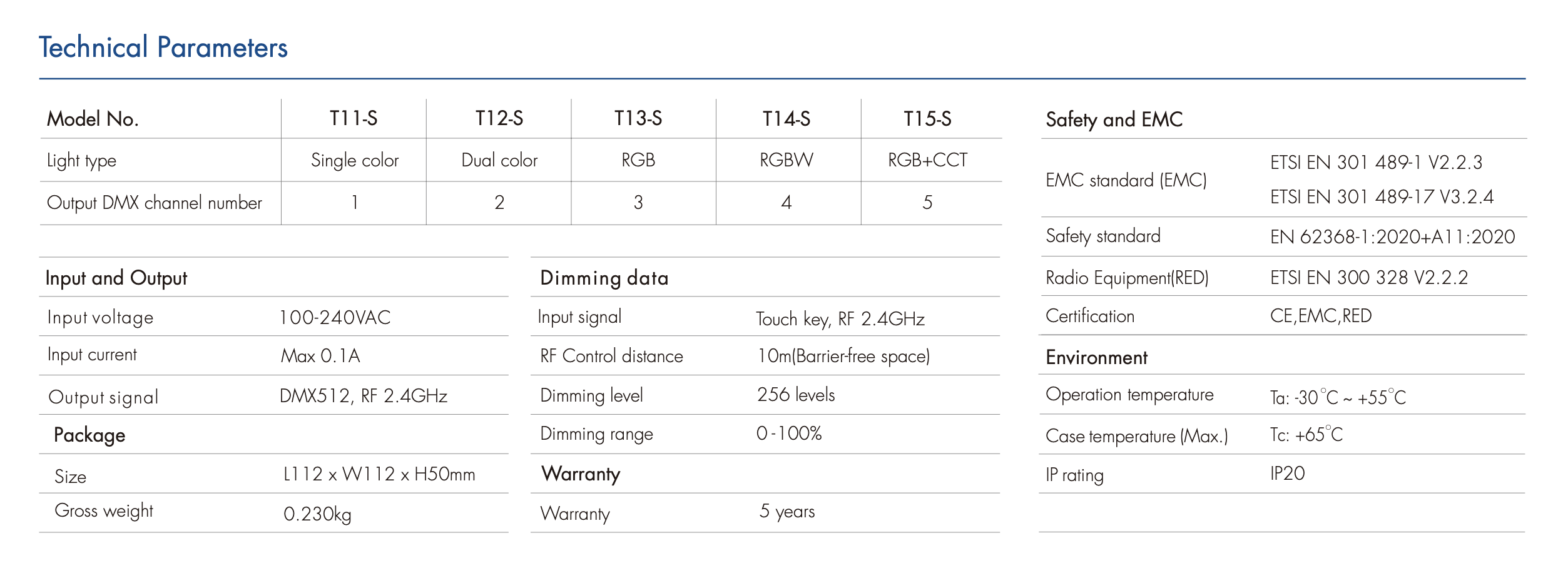 • Sygnał wyjściowy: DMX512, RF 2.4GHz