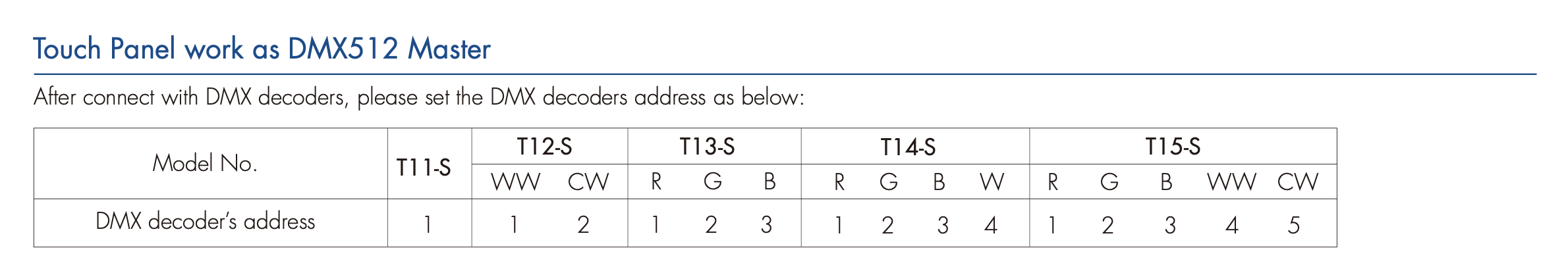 • Panel Ściemniacz LED dotykowy 1 strefowy DMX512 master, może również być używany jako 1 strefowy pilot RF