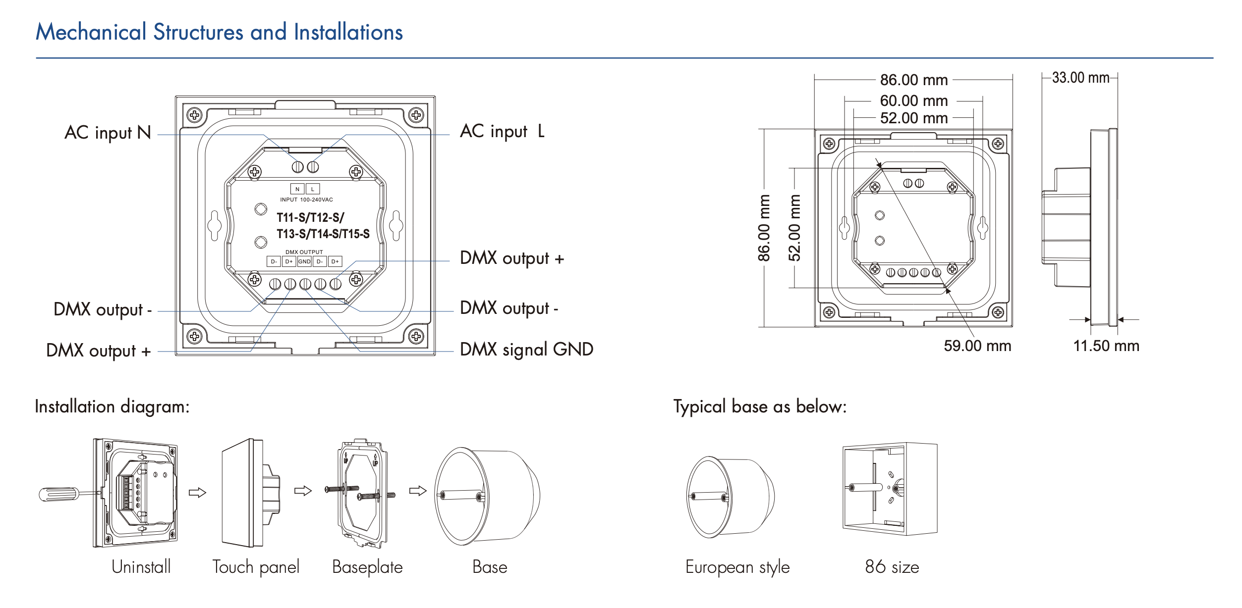 T11-S(W) Panel LED RF+DMX512 Ściemniacz Dotykowy 1-Strefowy