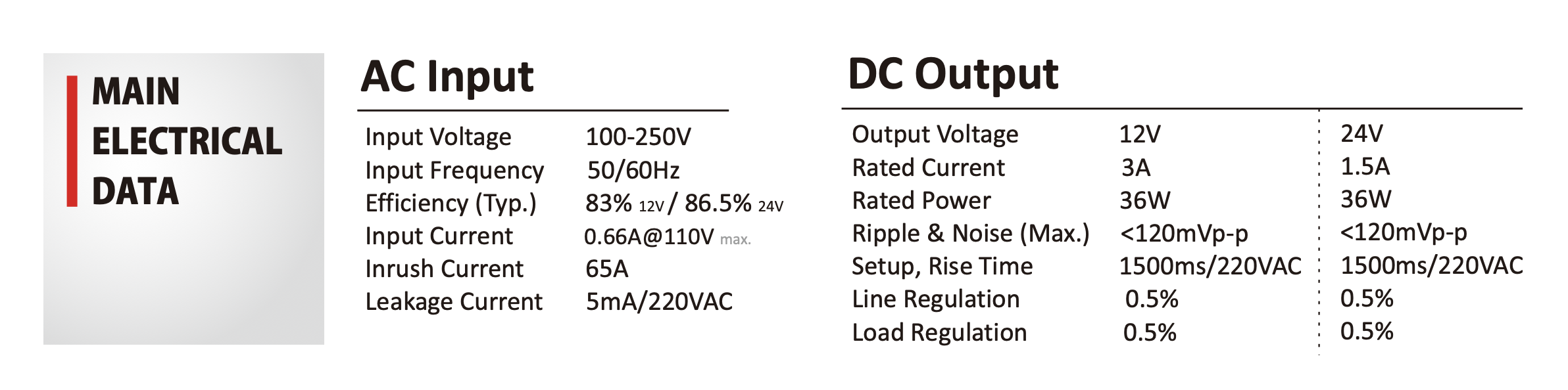 Zasilacz LED 36W | 24V | IP20 | JLV-24036K-D