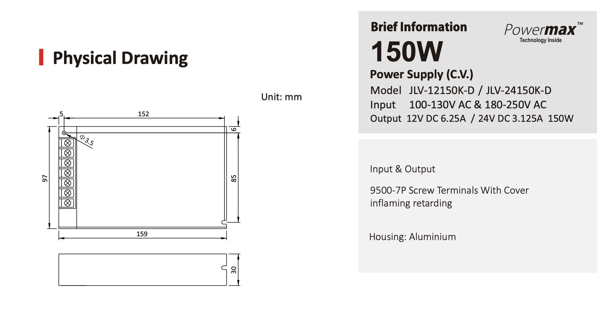 Zasilacz LED 150W | 24V | IP20 | JLV-24150K-D