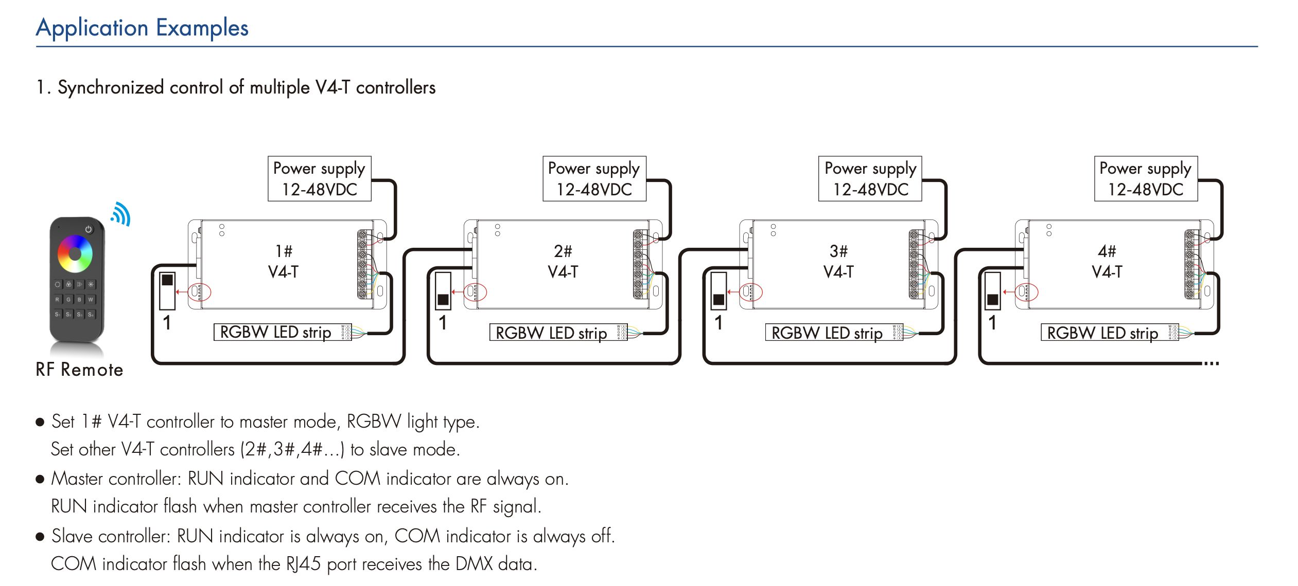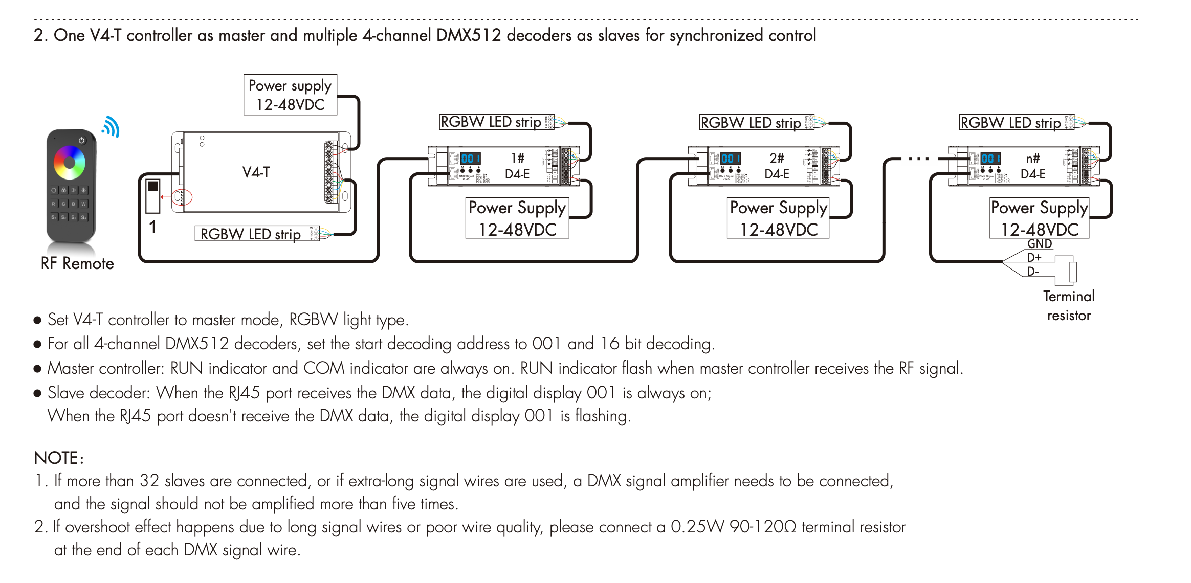 • Tryb slave może również wykorzystywać 4-kanałowy dekoder DMX512 z dekodowaniem 16-bitowym