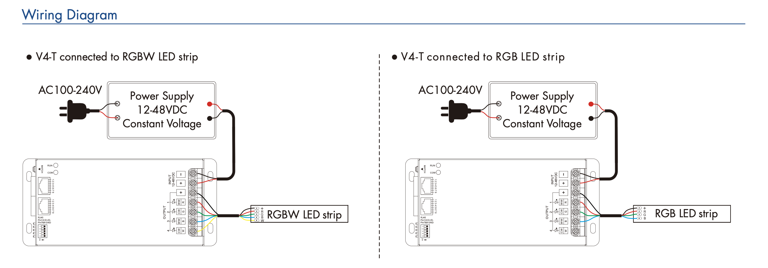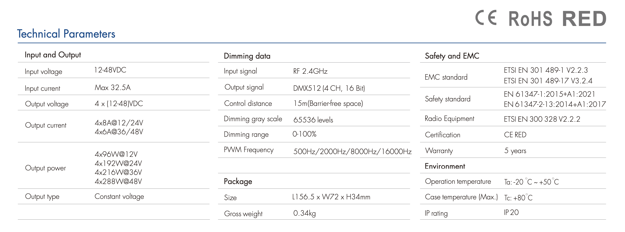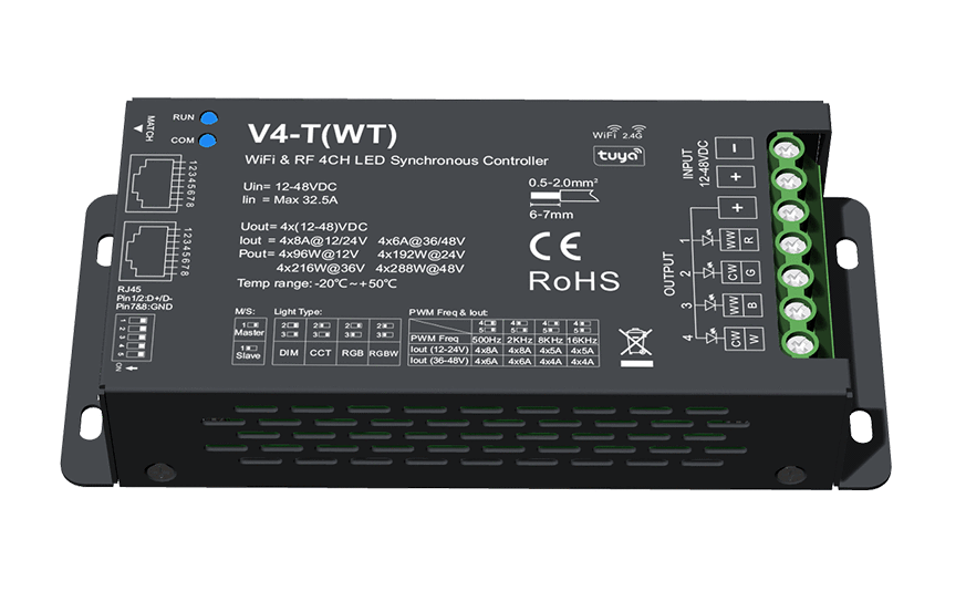 V4-T(WT) Sterownik LED RF&WIFI+DMX512 RGB/RGBW Odbiornik