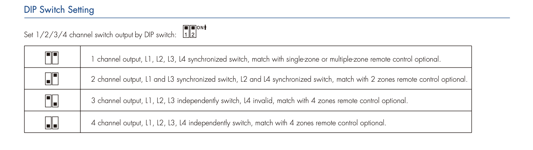 • Konfiguracja wyjść 1, 2, 3, 4-kanałowego przełącznika za pomocą przełącznika DIP