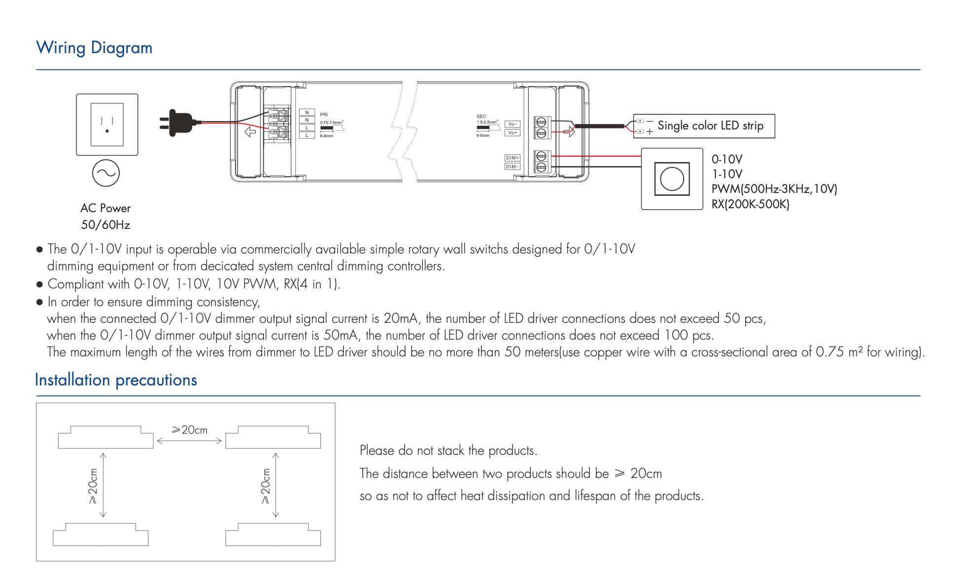 Funkcja ściemniania 0/1~10V, PWM, Resistance