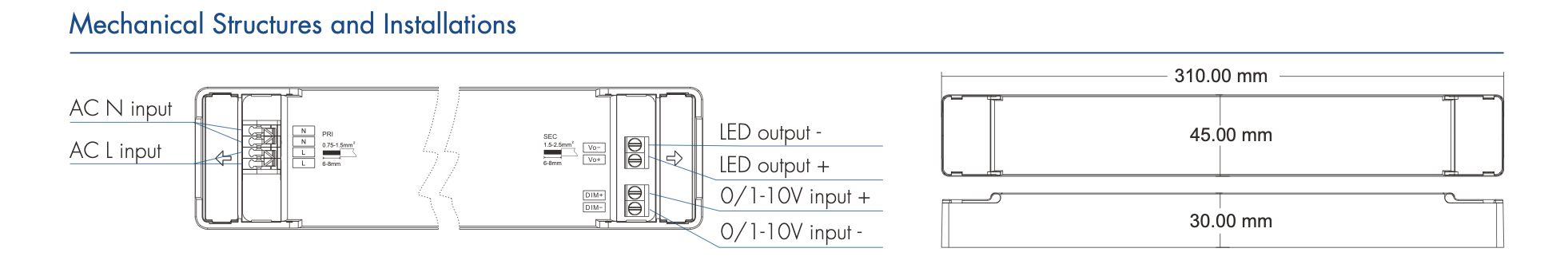 • Wymiary zewnętrzne: 310 x 45 x 30 mm (LxWxH)