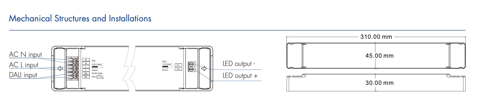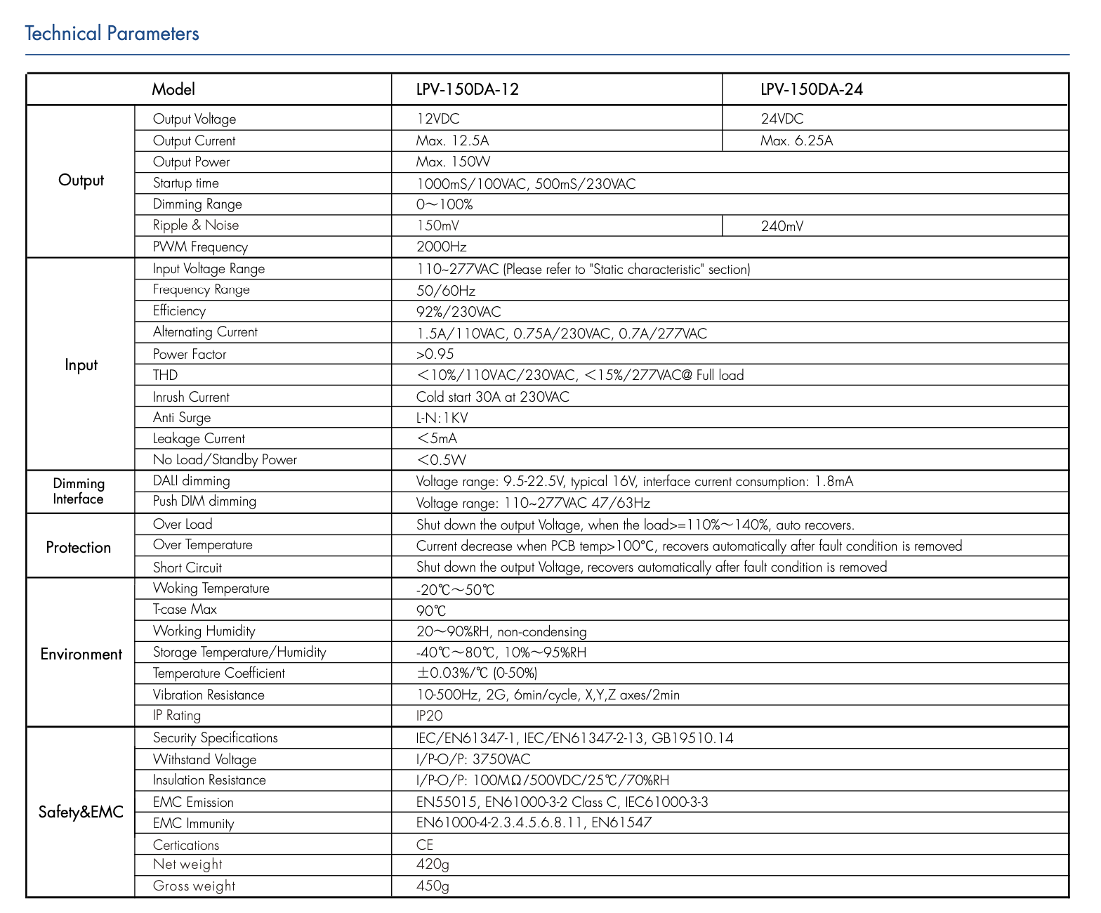 LPV-150DA-24 Zasilacz meblowy LED DALI&Push Dim AC230 IP20 24V 150W PFC SKYDANCE