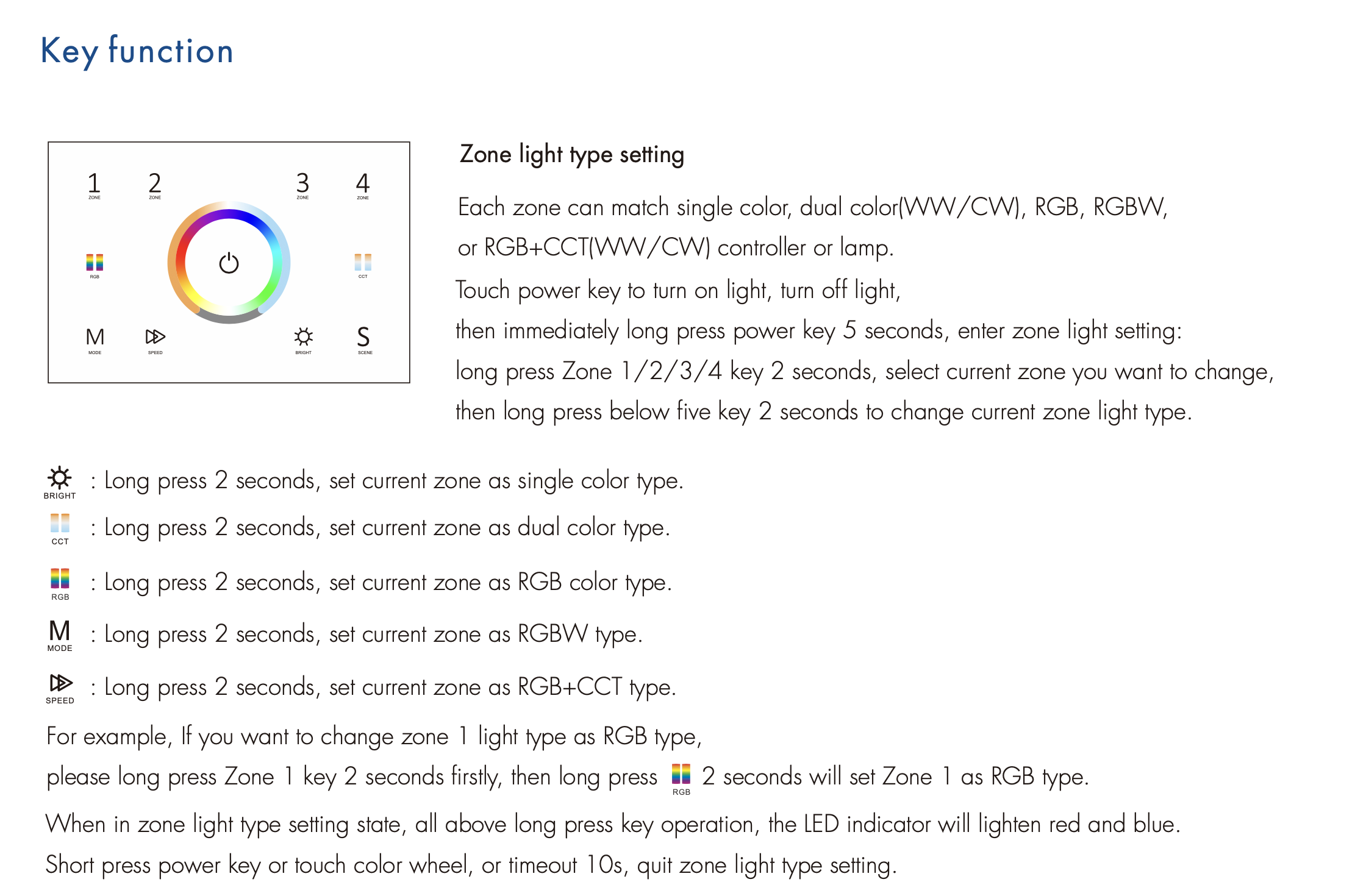 - W przypadku użycia jako pilota RF, każda strefa może zdalnie sterować wieloma kontrolerami LED RF 2,4G