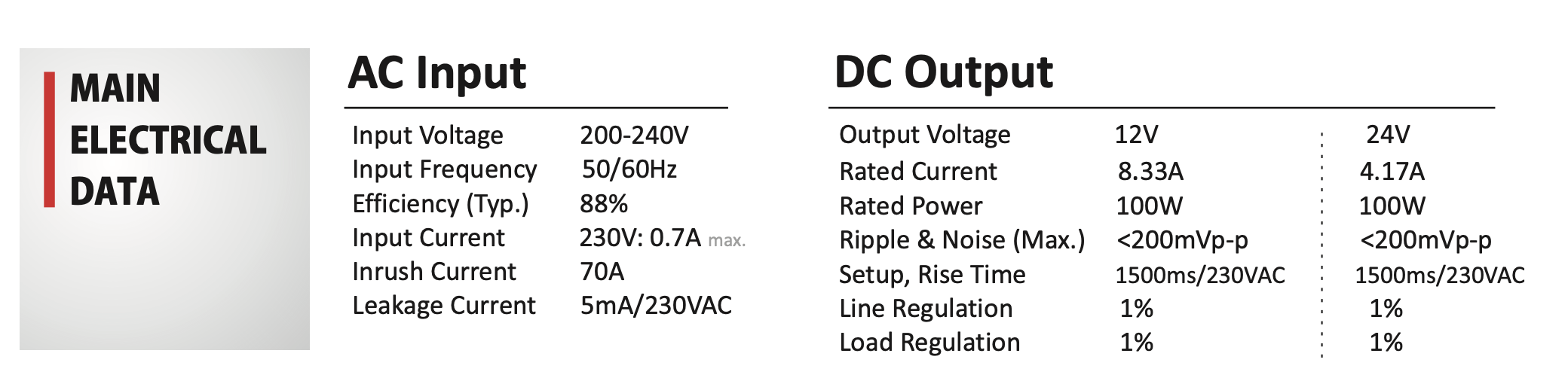 - PFC: Aktywne>0.95@Full load, 230VAC