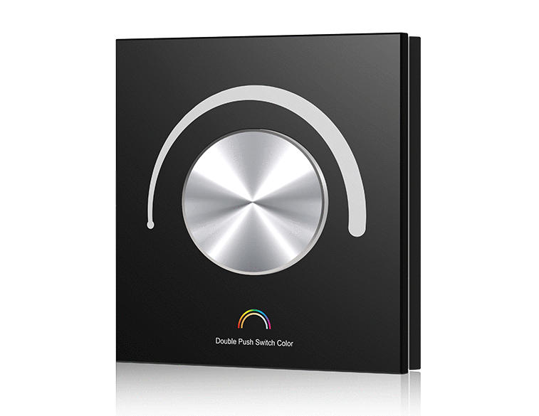 - Obrotowe pokrętło do regulacji jasności, temperatury barwowej lub koloru RGB, obsługa krótkiego, podwójnego i długiego naciśnięcia