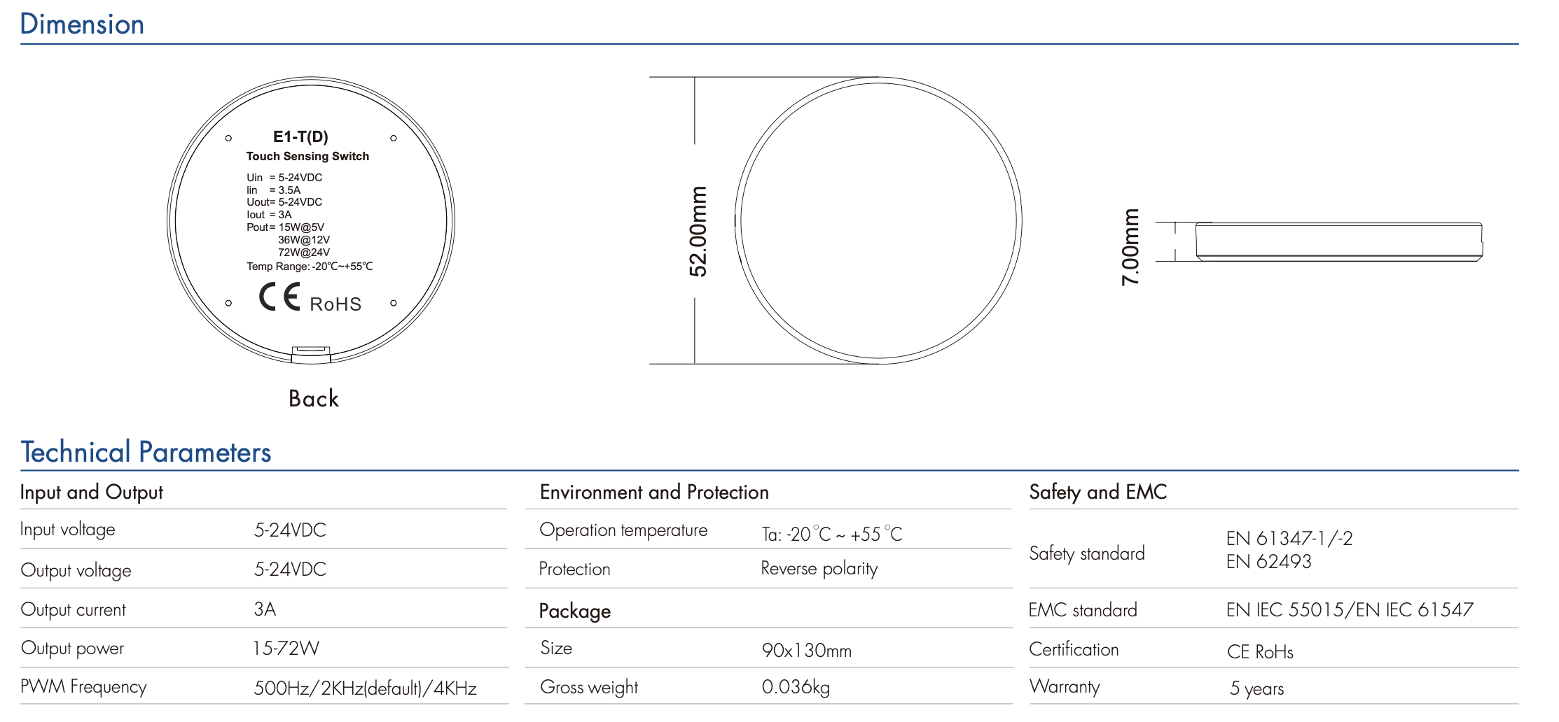 - Zgodność z normami: CE, RoHS
