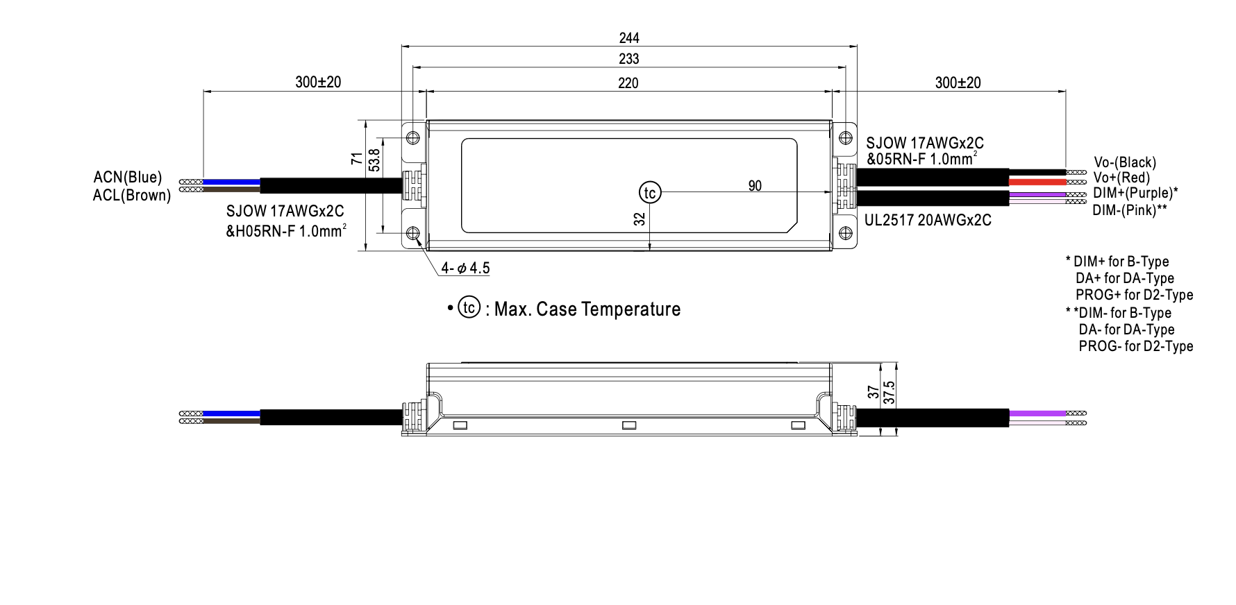 Wymiary zewnętrzne: 244x71x37,5 mm
