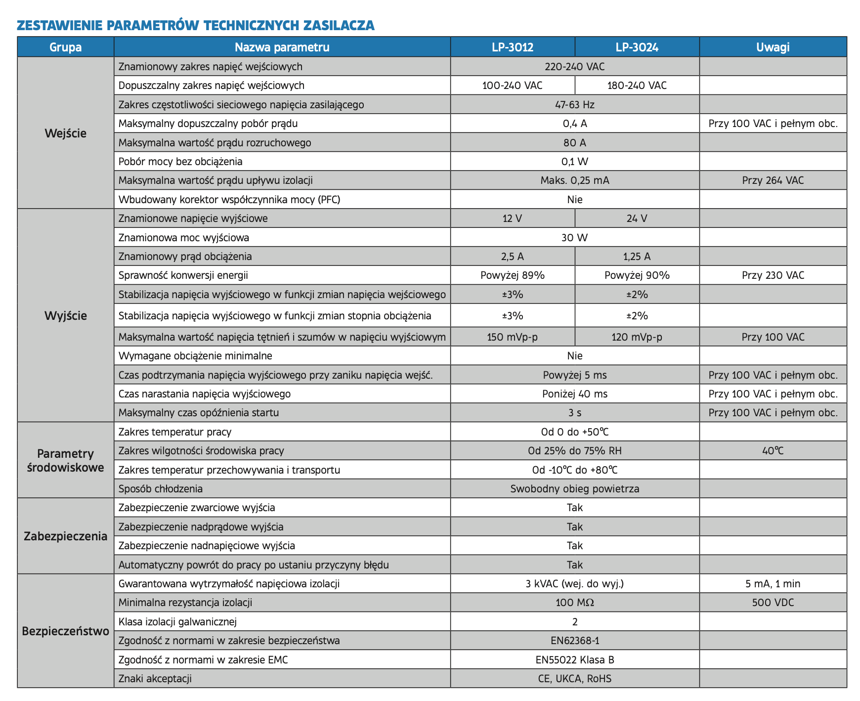 Zasilacz LED dopuszkowy IP67 24V 30W LP-3024 ESPE 5 lat gwarancji
