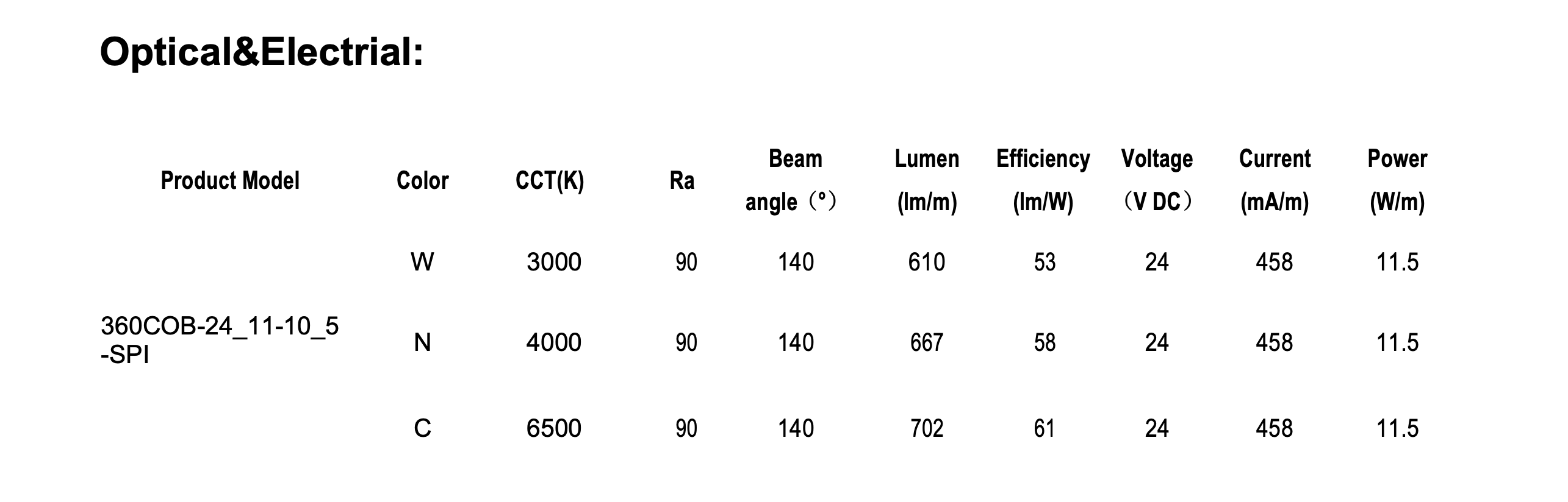 | Model | 360COB-24/11-10/5-SPI |