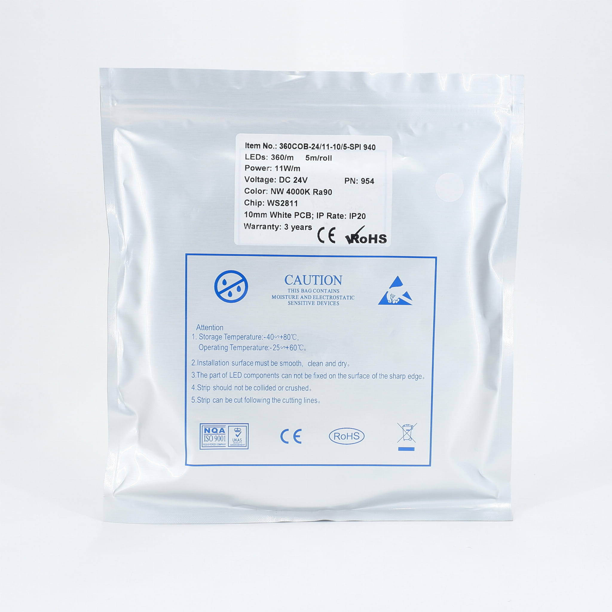 Taśma LED SPI Cyfrowa 24V COB Biała Neutralna 4000K 360LED 11,5W CRI90+ WS2811 360COB-24/11-10/5-SPI