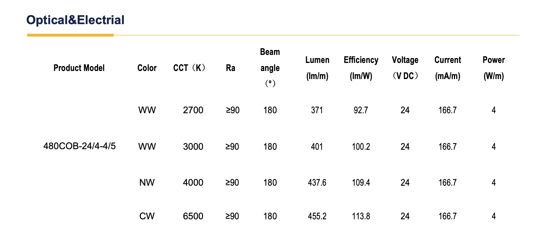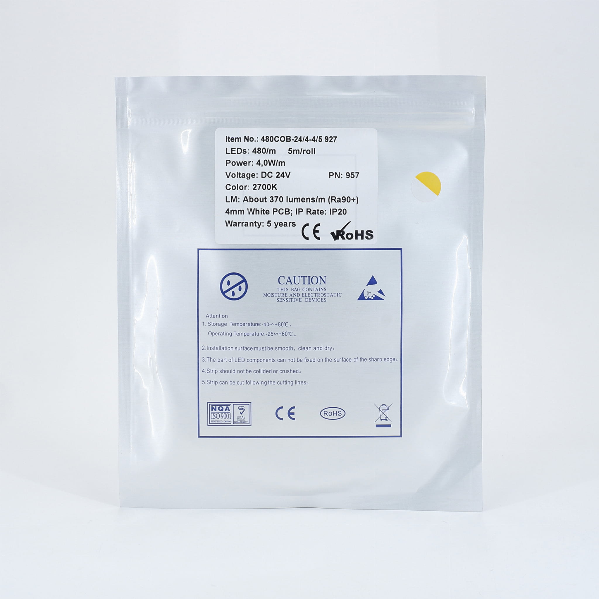 Taśma LED COB Ciepła Biała 2700K 4W 24V 480LED CRI90 4mm IP20 480COB-24/4-4/5