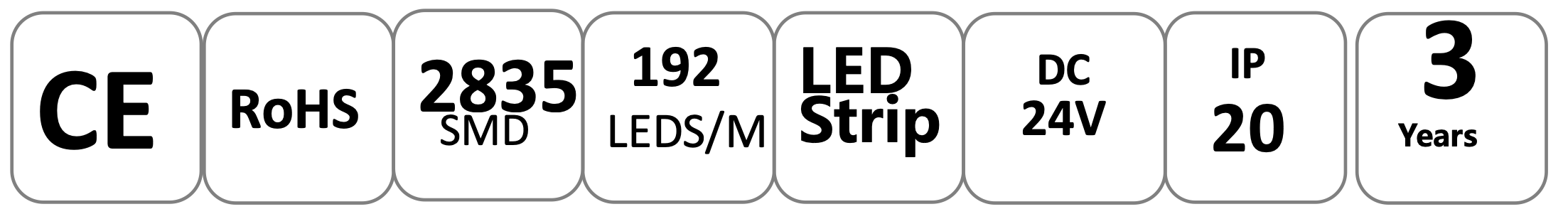 - Ilość diod: 192 LED/m (576 LED/3m)