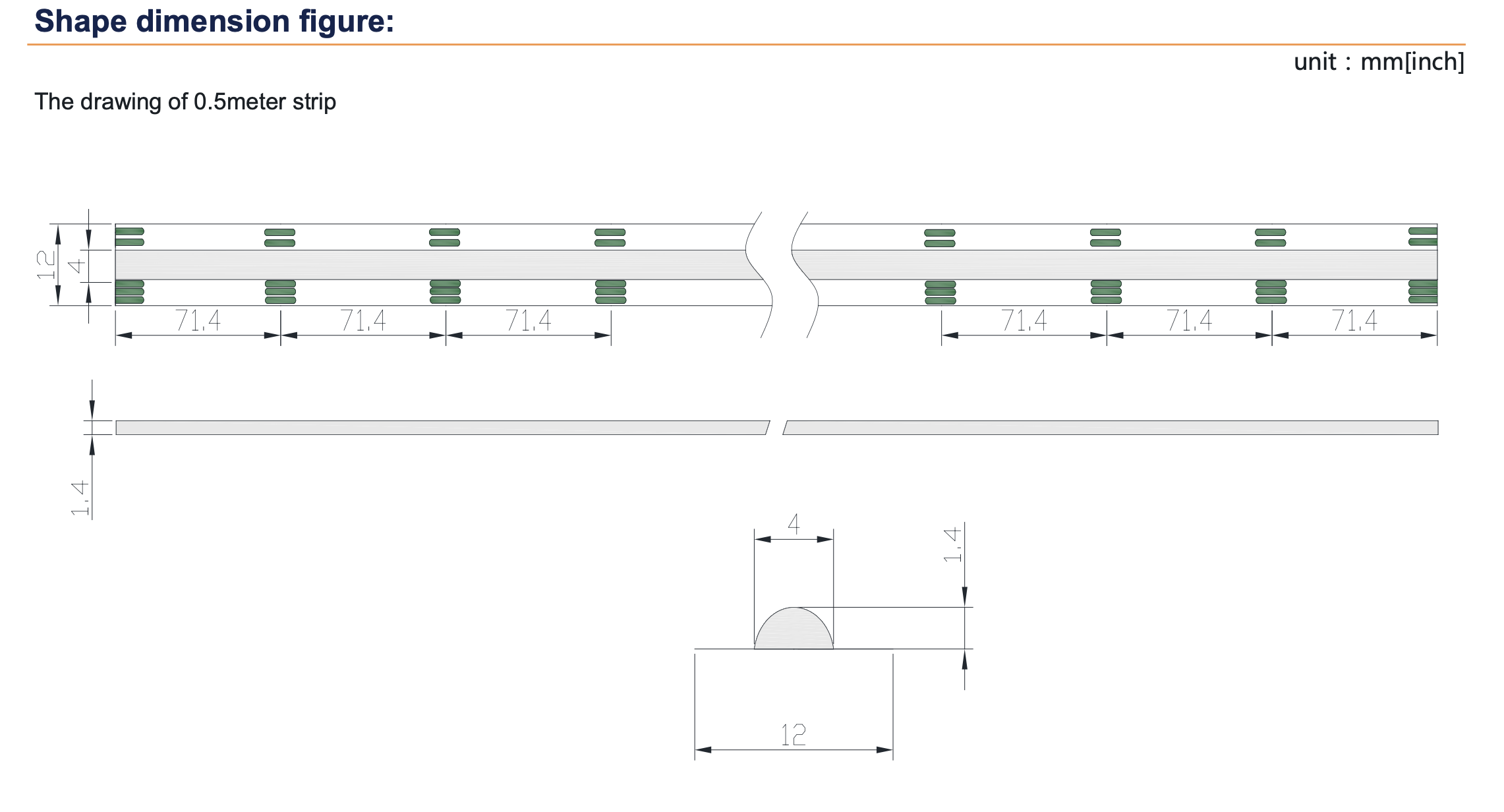 Producent podaje, że taśmę należy montować z zachowaniem podstawowych zasad dla taśm COB. Minimalna średnica gięcia powinna wynosić 50 mm, taśmy nie należy zginać pod kątem prostym ani skręcać. Miejsca cięcia i połączeń powinny być odpowiednio zabezpieczone. Podział cięcia wynosi 71,4 mm.
